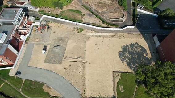 基礎工事がスタートしました。設計図に基づいて鉄筋を配置しています。これは、建物の安全性と耐久性を確保するための重要な工程の一つです。