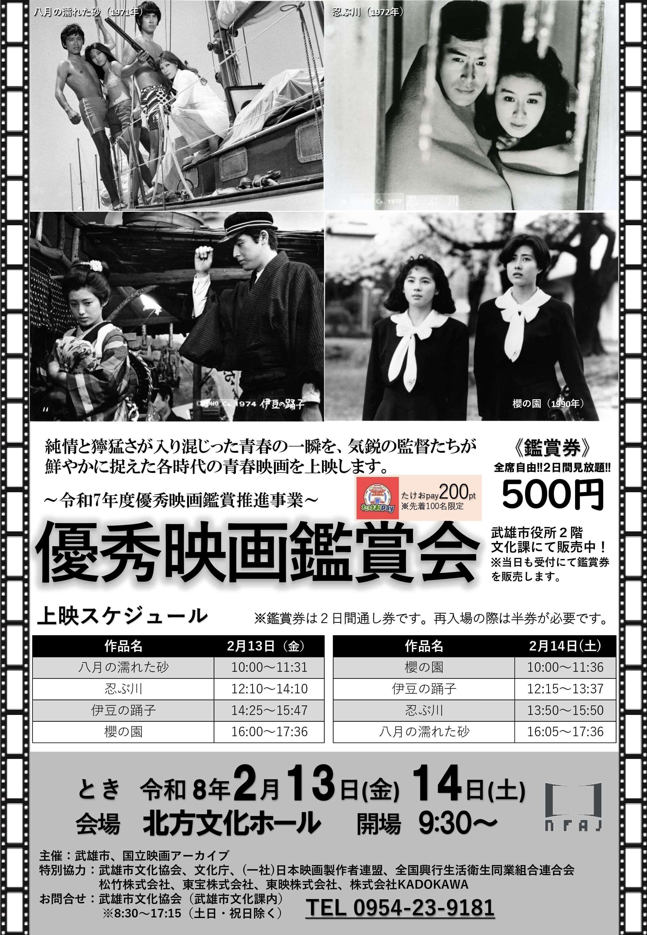 優秀映画鑑賞会に参加した方には、たけおpay200ポイントを各日プレゼントします。※先着100名限定