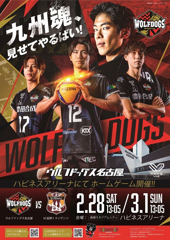 【男子バレーボール】長崎県のハピナスアリーナで『ウルフドッグス名古屋』VS『VC長野トライデンツ』が開催されます!