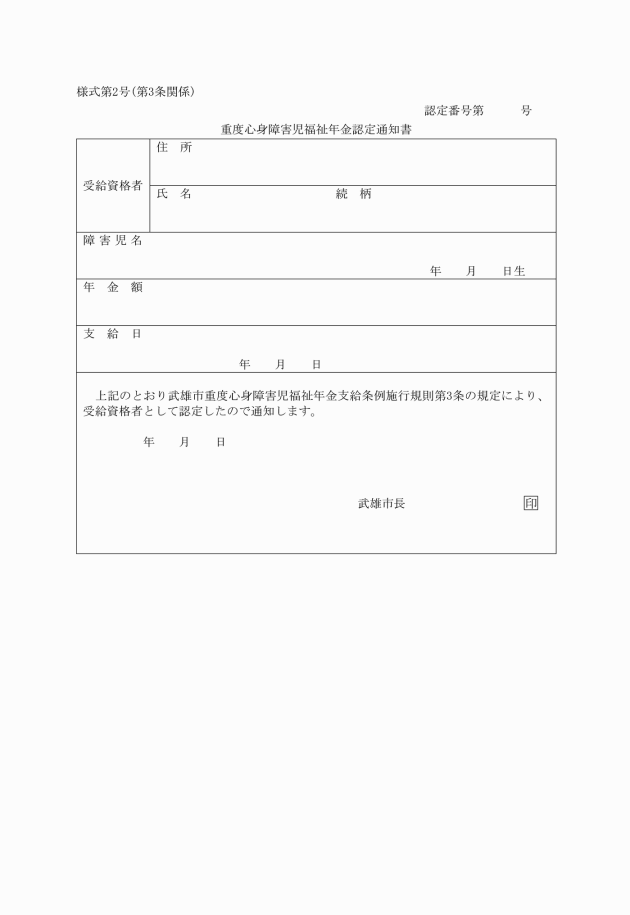 ○武雄市重度心身障害児福祉年金支給条例施行規則