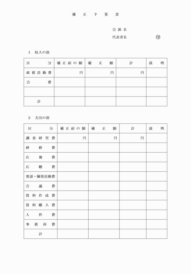 第2条 政務活動費の交付を受けようとする会派の代表者は、会派結成(異動)届書(様式第1号)を議長を経由して市長に提出しなければならない。届け出た事項に異動を生じたときも、同様とする。