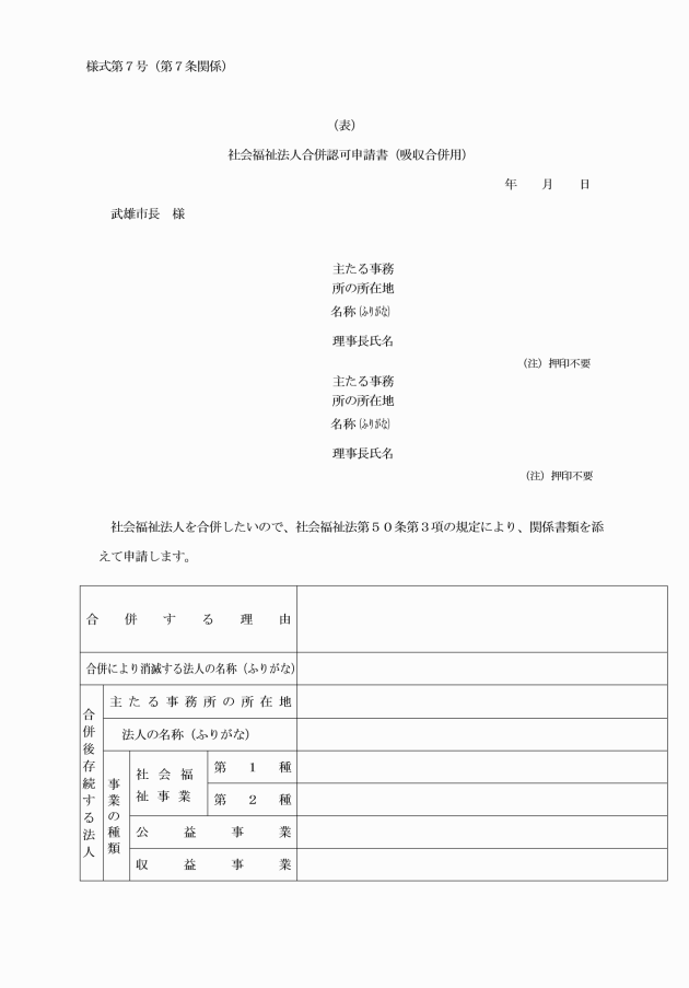 第2条 省令第2条第1項の申請書は、社会福祉法人設立認可申請書(様式第1号)によるものとする。