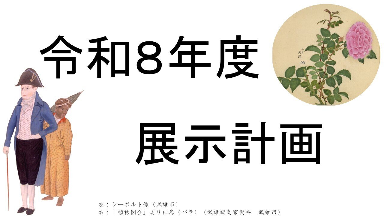 武雄市図書館・歴史資料館主催の令和8年度展示計画についてお知らせします。