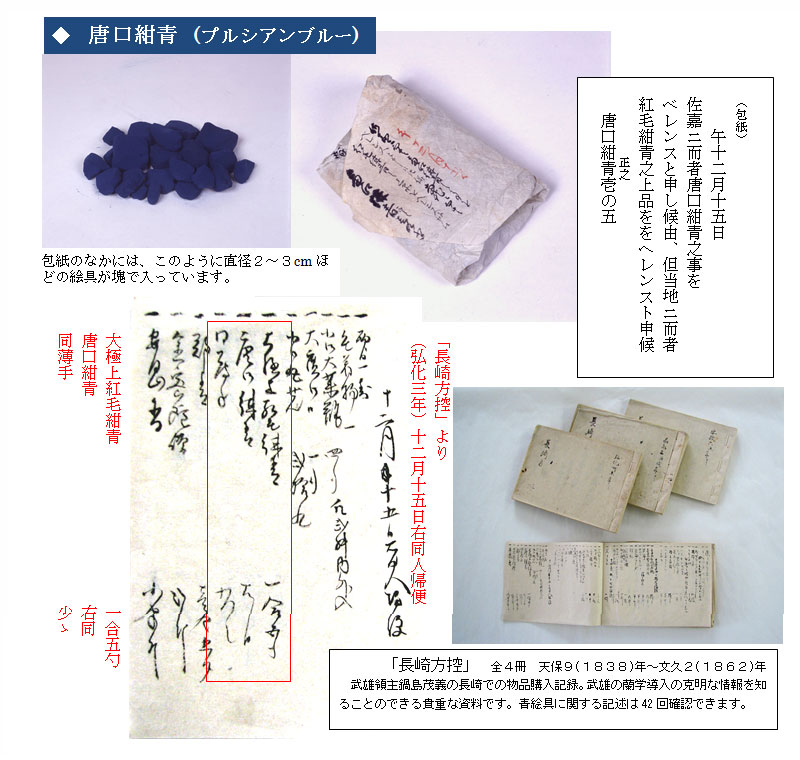 この度は、武雄に伝わる青色絵具と、茂義が描いた絵画の中より実際に青色絵具が使用された作品を中心に、ご紹介いたします。